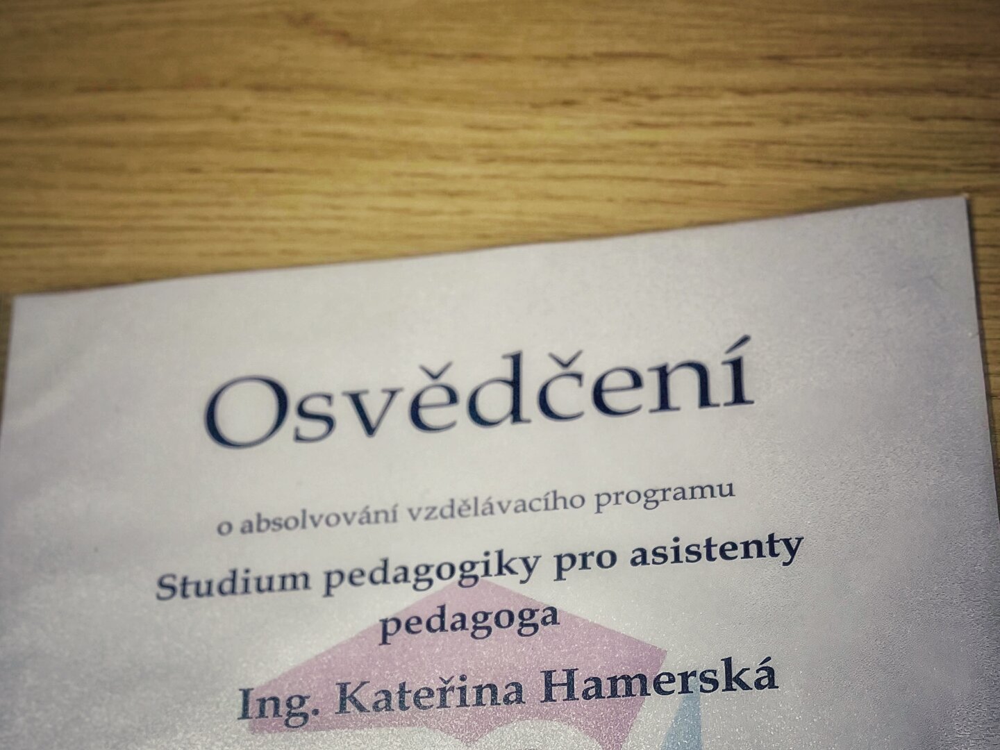 Paní Kateřina Hamerská úspěšně absolvovala dvouměsíční rekvalifikační kurz v Hradci Králové na pozici asistenta pedagoga v rozsahu 124 hodin, který nad míru naplnil její očekávání. Stejně tak zvládla 40hodinovou praxi na broumovské Základní škole a Praktické škole, kam dochází převážně děti ze sociálně znevýhodněného prostředí. Během ní získala zkušenosti s prací se žáky s lehkým mentálním postižením. „S dětmi se dostanete do jiného světa, nabijí vás,“ přibližuje své pocity.
