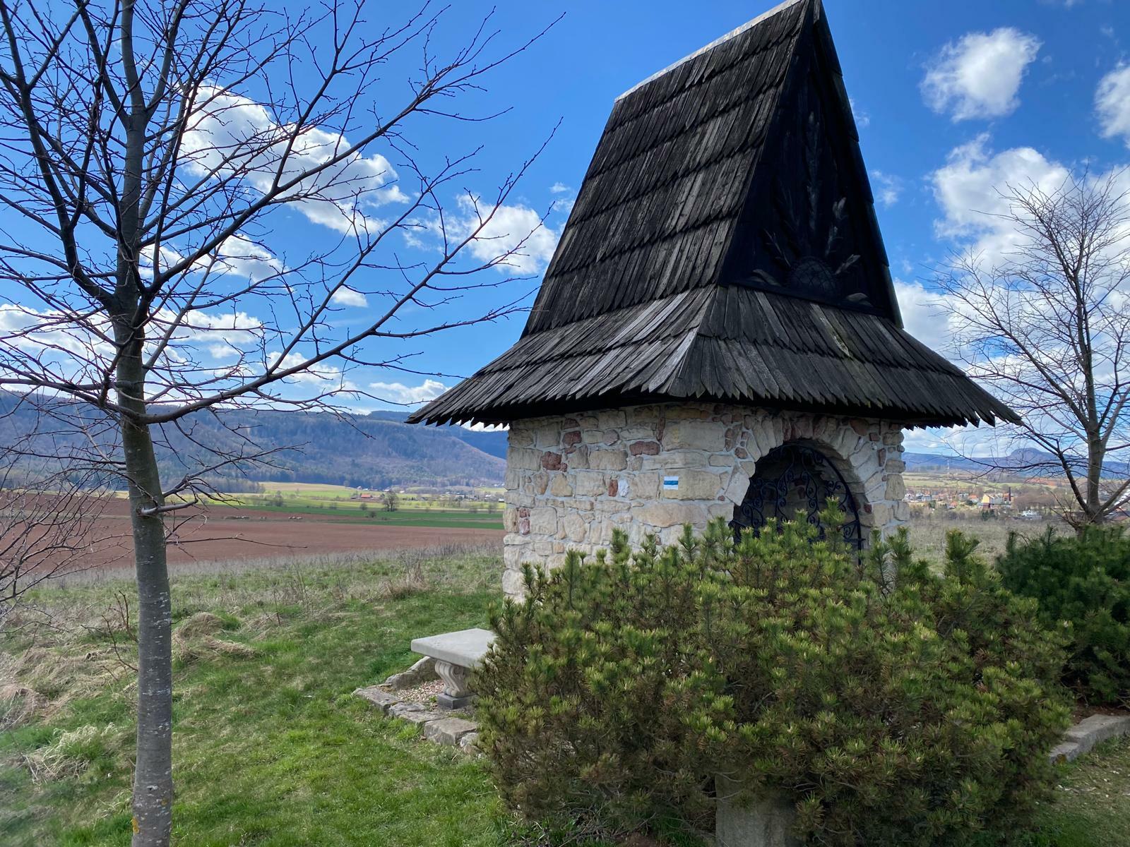 Naším dnešním startem je autobusová zastávka „Božanov, horní“, odkud sejdeme přibližně 80 metrů zpět dolů do vesnice, kde se na první odbočce vydáme vpravo mezi domky. Odtud dále po pěšině mezi poli, kde zleva – pěkně podél lesa – mineme kopeček Božanovský vrch (na konci článku najdete odkaz na přesnou trasu na mapy.cz). Po překročení česko-polské hranice jdeme kousek lesem – po pěšině lemované voňavými fialkami, která nás zavede přímo k polské „rozhledně“ Guzowata (450 m n.m.).