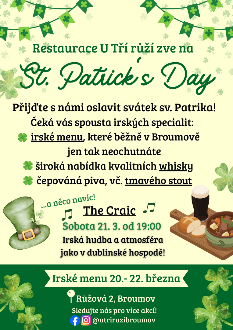 St. Patrick´s Day v restauraci U Tří růží
