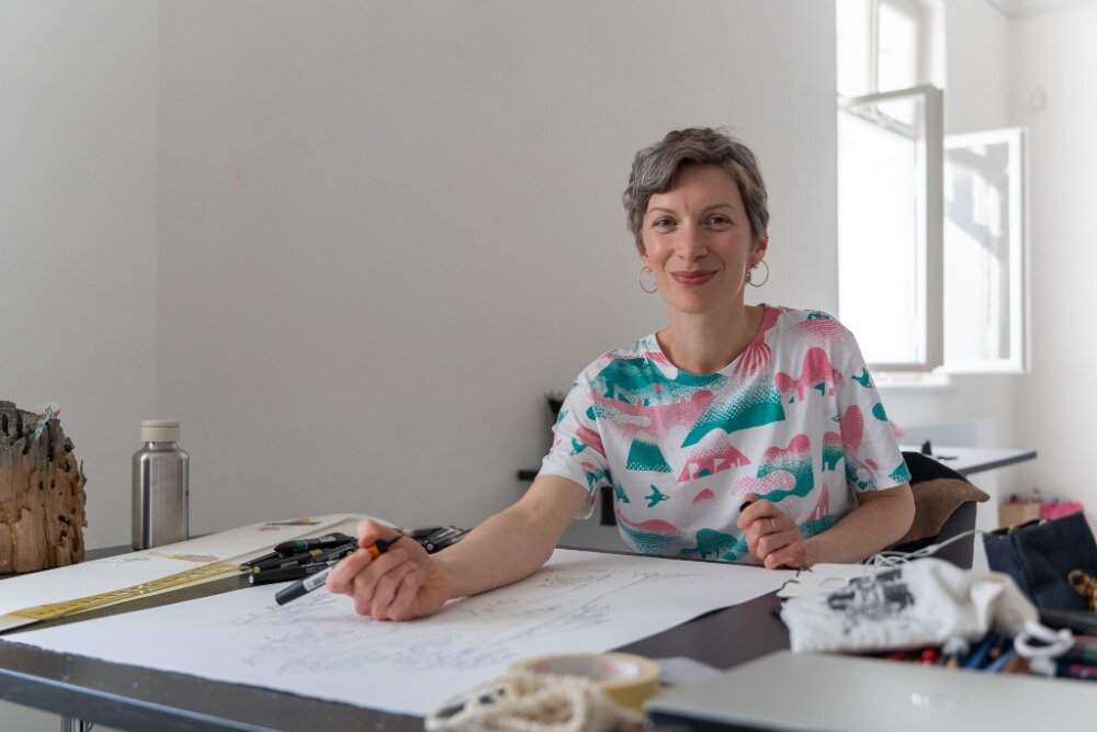 Daniela se na sympoziu věnovala tomu, co má ráda – přírodě. Z procházek po okolí přinášela na svůj pracovní stůl drobné dřeviny a paměť telefonu se jí plnila fotkami struktur dřeva, kvetoucími lišejníky a dalšími přírodními skvosty. Ze svých průzkumných procházek načerpala inspiraci, kterou převedla do originálních kreseb motivů, které jsou nám vlastně známé, ale zároveň působí tak nějak mimozemsky. K tomuto dojmu přispívá i použití zářivých barev a kombinace barev netypických pro přírodniny, které jsou pro Daniely tvorbu charakteristické.