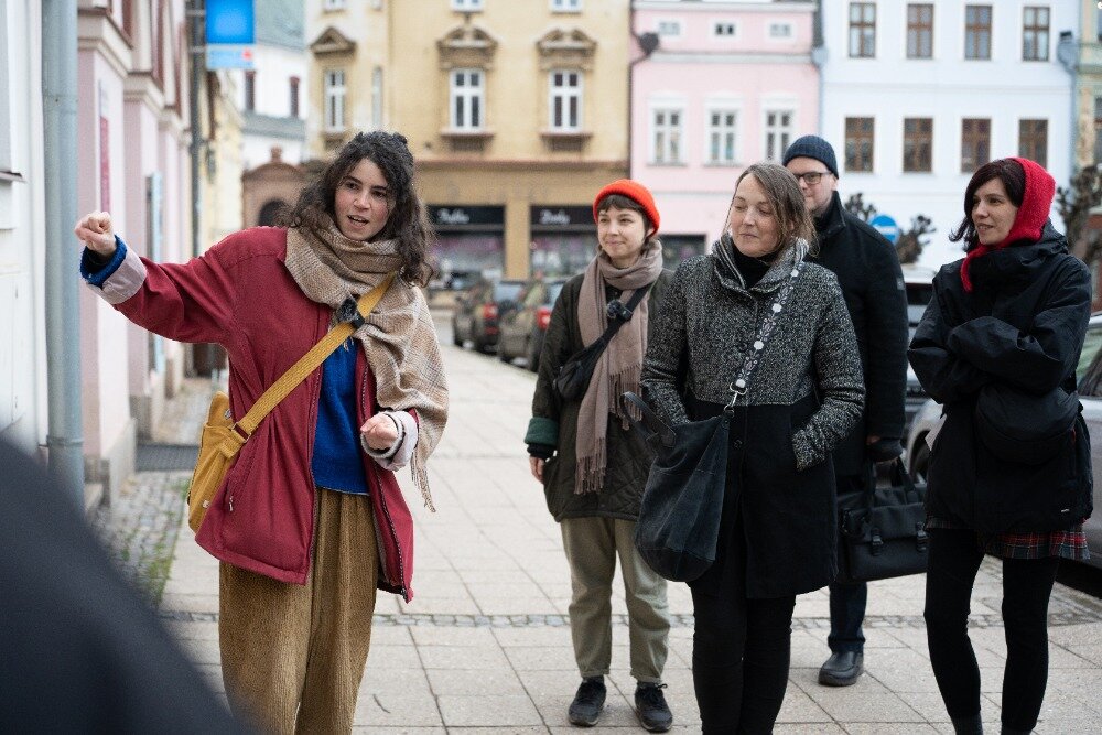 Výchozím bodem výstavy je výloha v ulici V Kopečku, kde si můžete prohlédnout velkoformátové tisky od Jana Šrámka. V bývalé trafice vedle železářství na Mírovém náměstí vystavuje slovenská rezidentka Daniela Olejníková. Naproti v Informačním centru je ke shlédnutí animace od původem běloruské ilustrátorky a animátorky Darii Dedok. Na další straně náměstí ve vitrínkách u Městského divadla vystavuje Kateřina Illnerová svůj experiment s alternativním zobrazením ilustrace pomocí šití. V bývalém řeznictví vás čeká výstava jemných akvarelových maleb od finské ilustrátorky Terhi Ekebom. A pak už je to kousek k poslednímu tradičnímu zastavení výstavy – malbě na zdi na dětském hřišti, které se letos ujal Tomáš Staněk.
