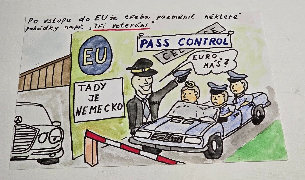 Zlom přišel až někdy v období, kdy jsme vstupovali do Evropské unie. Začal jsem malovat doma i v práci v mezičasech, protože provoz už byl malý. V tu dobu se rušily hranice. Pracoval jsem totiž na celnici, proto to mám se vstupem do unie spojené. V práci jsem si pak kreslením dělal legraci. Vznikaly takové humorné věci. Maloval jsem vtipy o vstupu do EU.