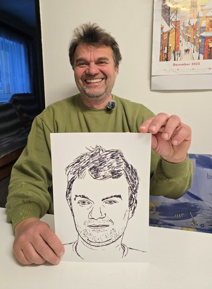 Kreslil jsem na kroužku cvičný obrázek tužkou. Byl to portrét bez přenášení proporcí. Prostě kreslení od oka. Obrázek tu nemám. Nechal jsem ho ve třídě dětem, co tam mají taky kroužek malování.