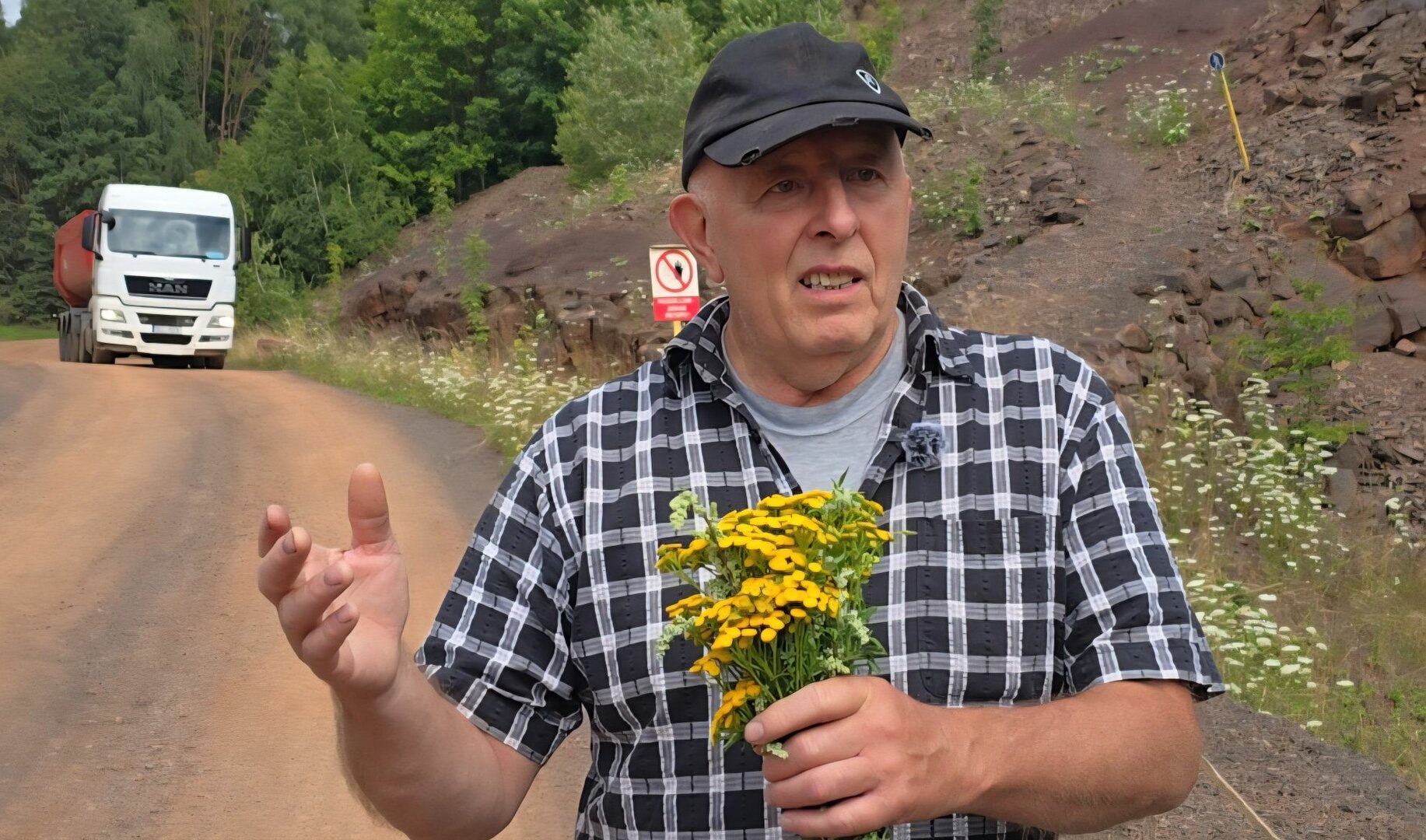 Nakonec se pan Joudal znovu rozhlédne po kamenech, které má tolik rád, upraví svazek vratiče v ruce a s úsměvem pokračuje svou cestou po naučné stezce v lomu, který je jeho „srdcovka“.
