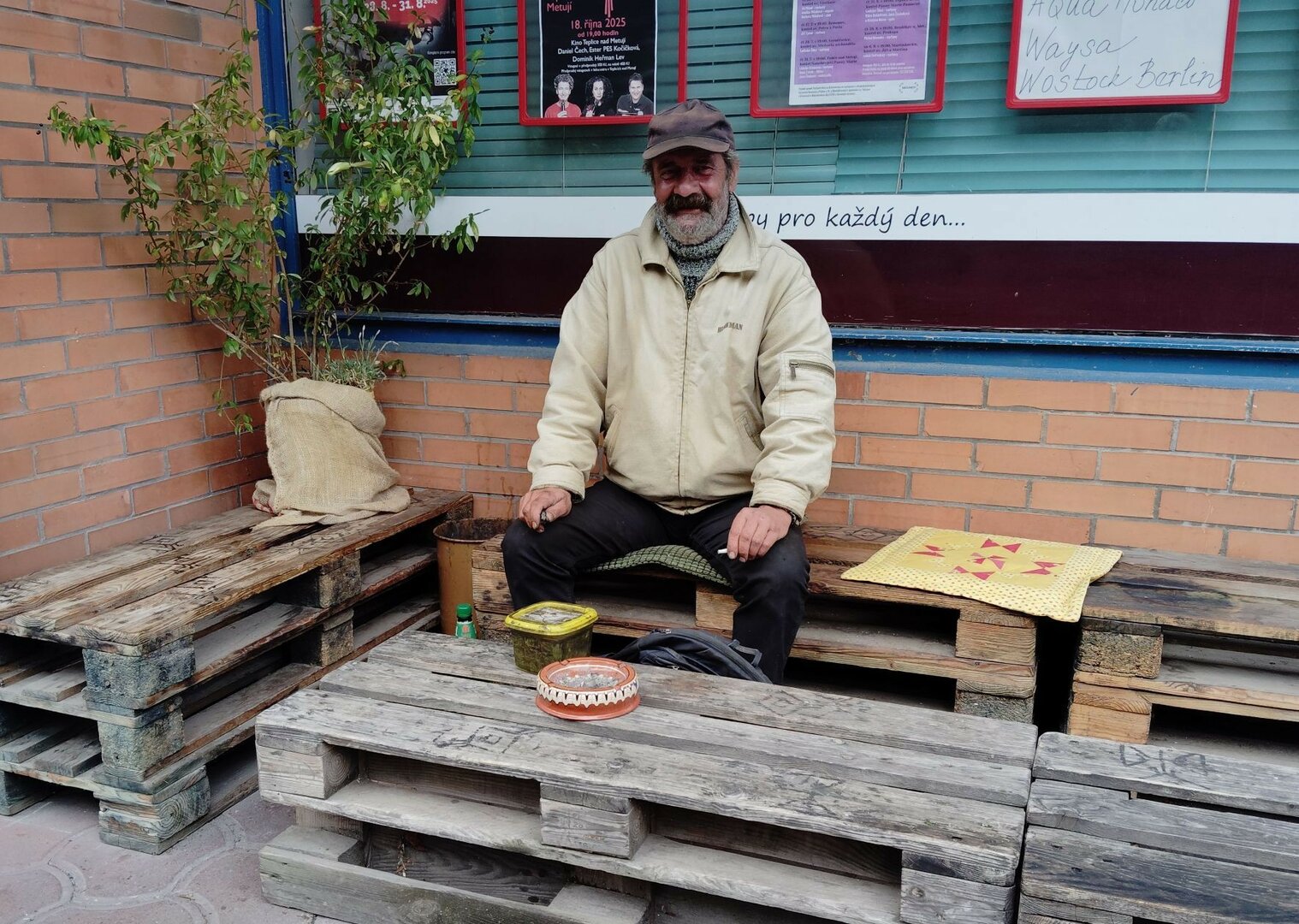Každý den ve dvě hodiny přijdu tady před sámošku a jsem tady asi do čtyř a pak jdu pomáhat panu Berkovi. Dělám, co je potřeba – štípu dřevo, včera jsem skládal uhlí, pokecám s chlapama. Nejdu se do hospody vožrat, ale udělám svoji práci, dám si tak ty tři pivečka, co si odpracuju a pak teprve jedu nahoru. Tohle mě drží celou zimu, když nemám jinou práci. Já jsem na úřadu práce, dali mi 2030 korun měsíčně. Říkal jsem si, „tolik“ peněz, neblázněte! Lidi mě tu znají, když někdo potřebuje pomoc, řekne mi. Takhle už funguju nejmíň tři roky. Dřív jsem byl zaměstnaný, dělal jsem na různých místech.