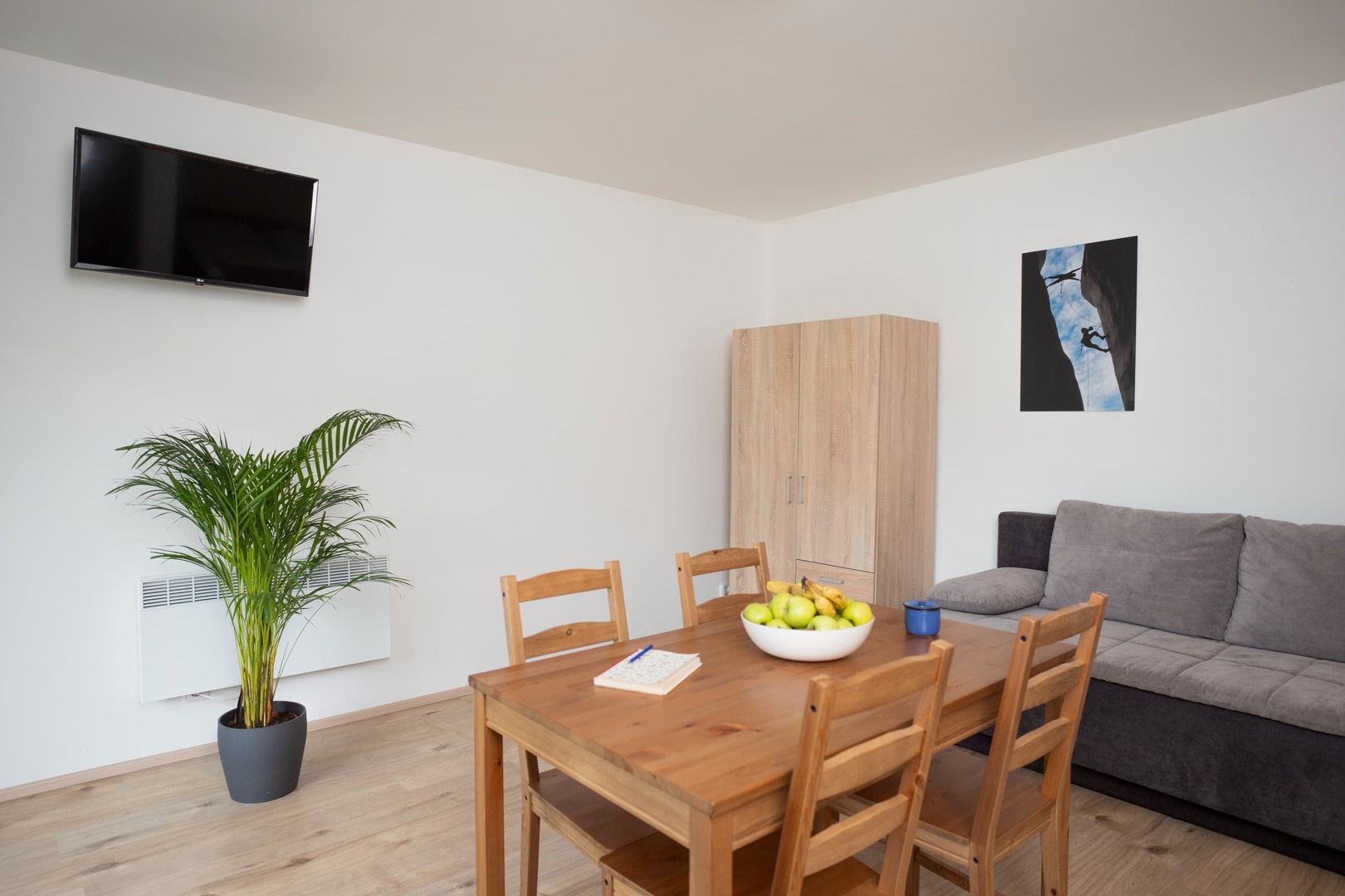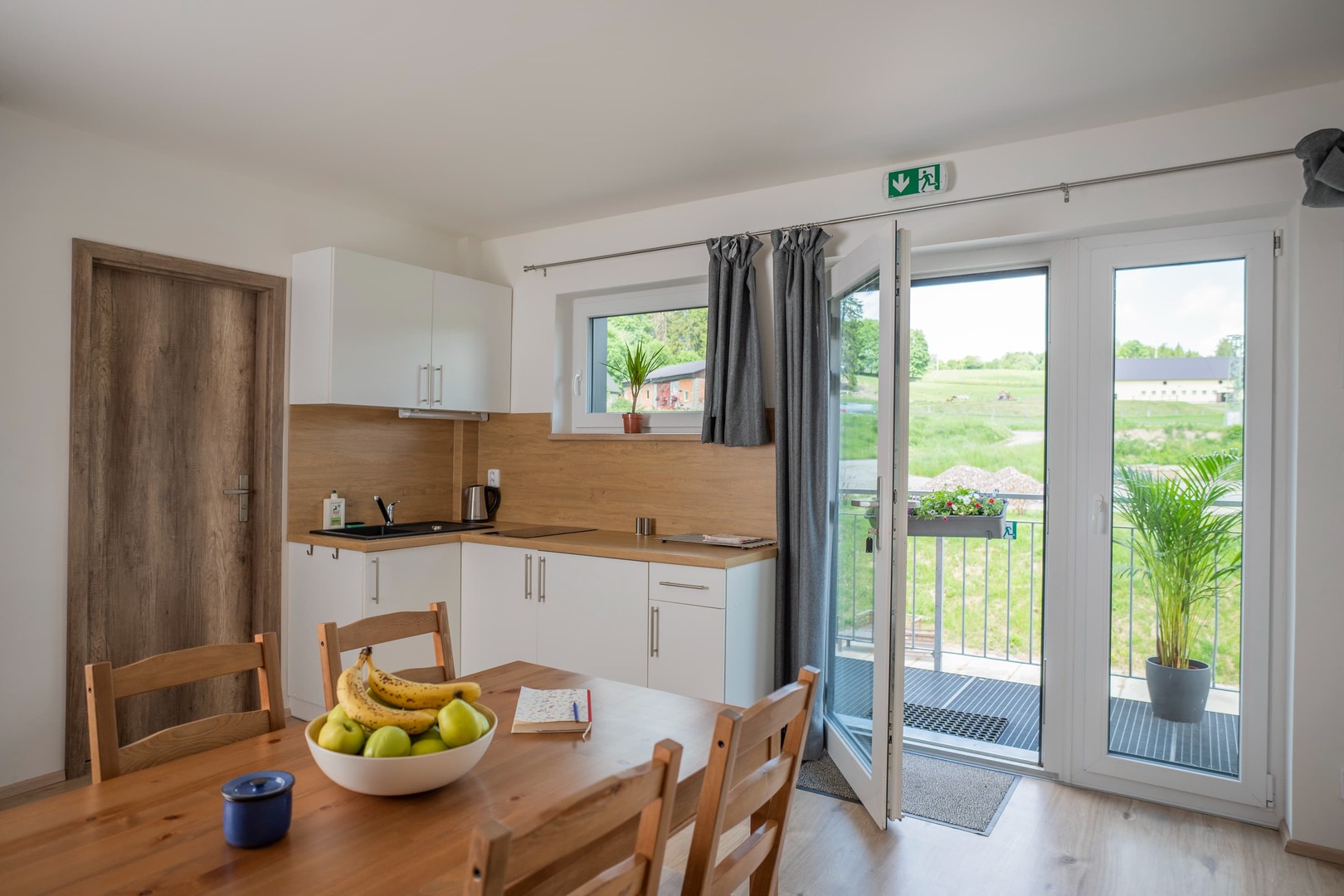V okolí ubytování se nachází hospodářská farma, výhled z okna tedy máte na islandské krávy, ovce, koně a další zvířata. Na druhé straně se tyčí Adršpašské skalní město.