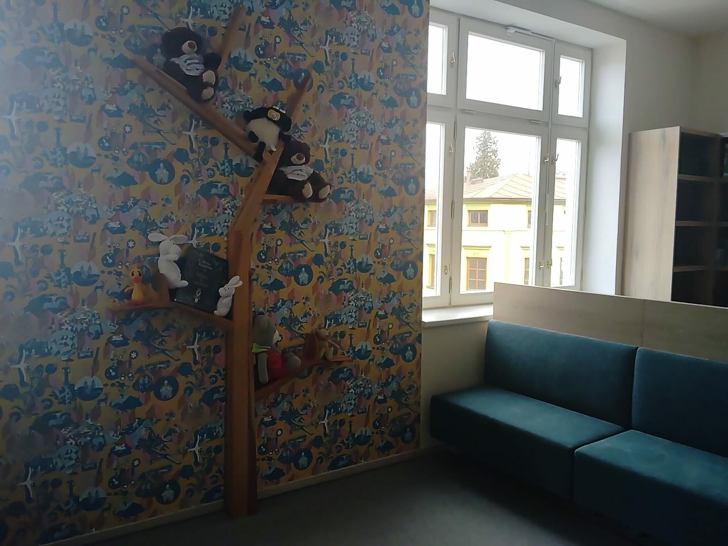 Stěny dětského oddělení jsou pokryté originální tapetou z dílny výtvarnice Evy Horské a studia Upupæpop. Marta Lelková prozrazuje, že tapeta odráží regionální pověsti a motivy, mimo jiné na ni na poslední chvíli přibyli ještě broumovští čápi a knihovna ji ještě využije k besedám pro děti. „Je to originální tapeta jen pro broumovskou knihovnu,“ dodává Lelková.