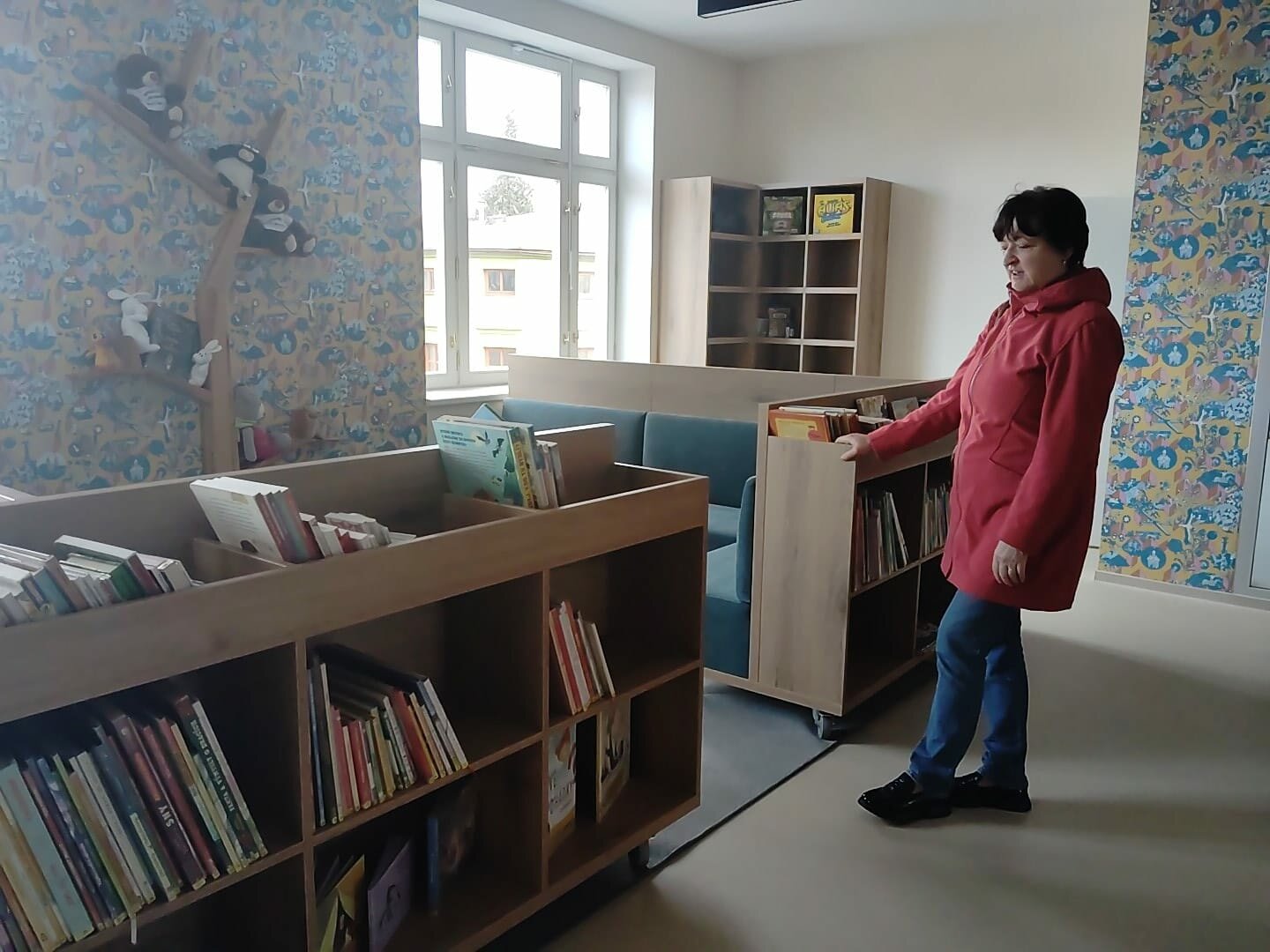„Knihy už jsou přestěhované všechny, podařilo se je přestěhovat během jarních prázdnin, a to za velké pomoci studentů Gymnázia Broumov a zaměstnanců Technických služeb. Byla to velká akce,“ říká vedoucí Městské knihovny v Broumově Marta Lelková. Její kolegyně v oddělení pro dospělé nyní ještě dorovnávají knihy do nových dřevěných regálů.