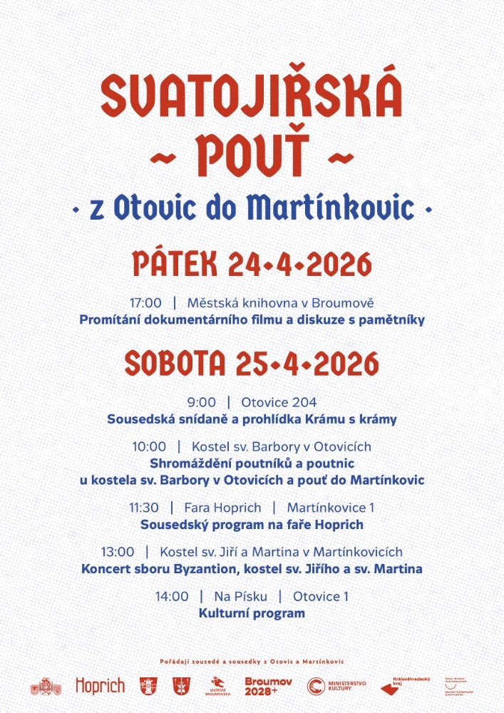 Svatojiřská pouť se koná díky sousedům a sousedkám z Martínkovic a Otovic a podpoře Česko-německého fondu budoucnosti, Ministerstva kultury ČR a Královéhradeckého kraje.